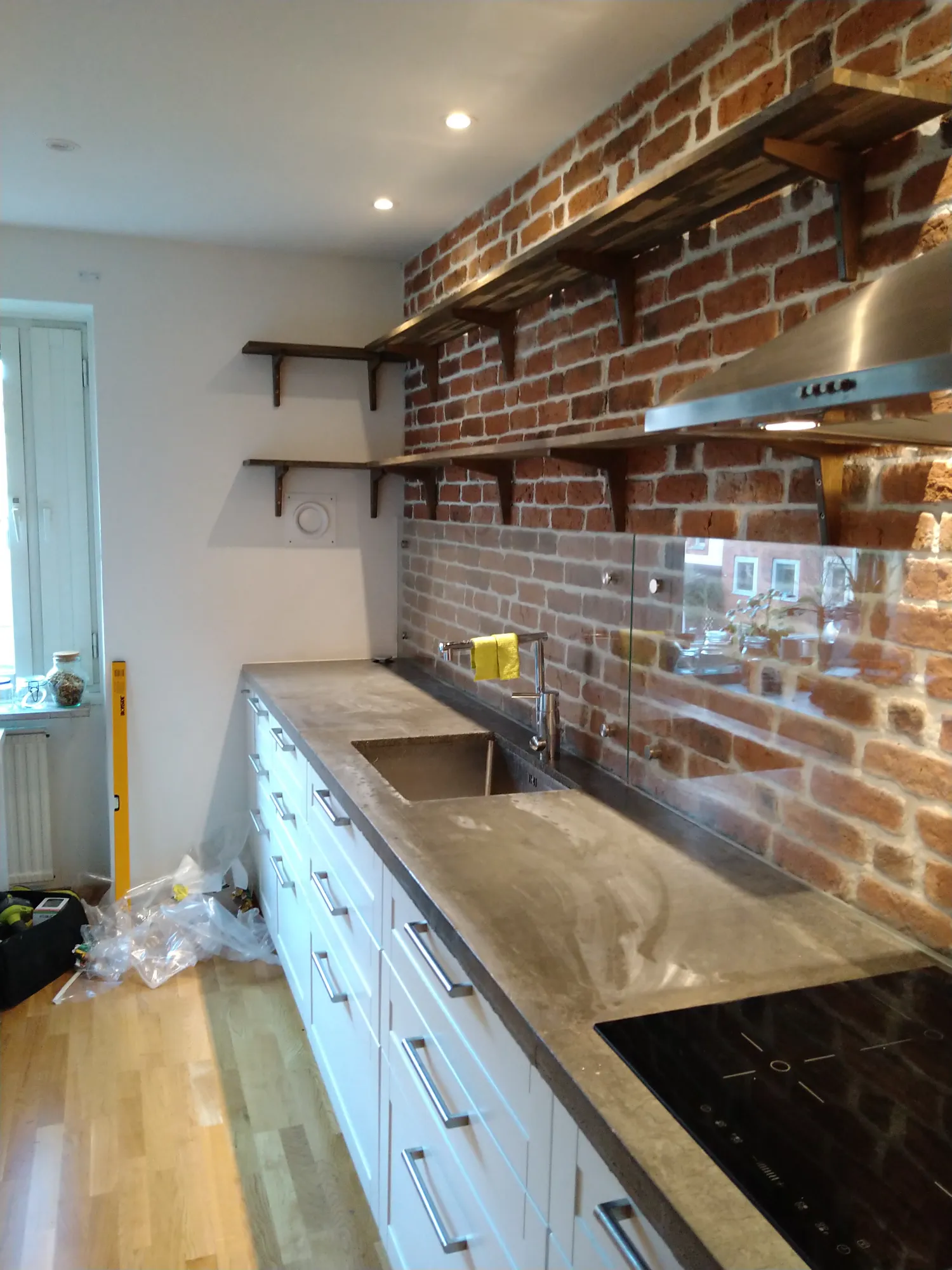 Kunden ville ha uppsatt hyllplan i svart ek