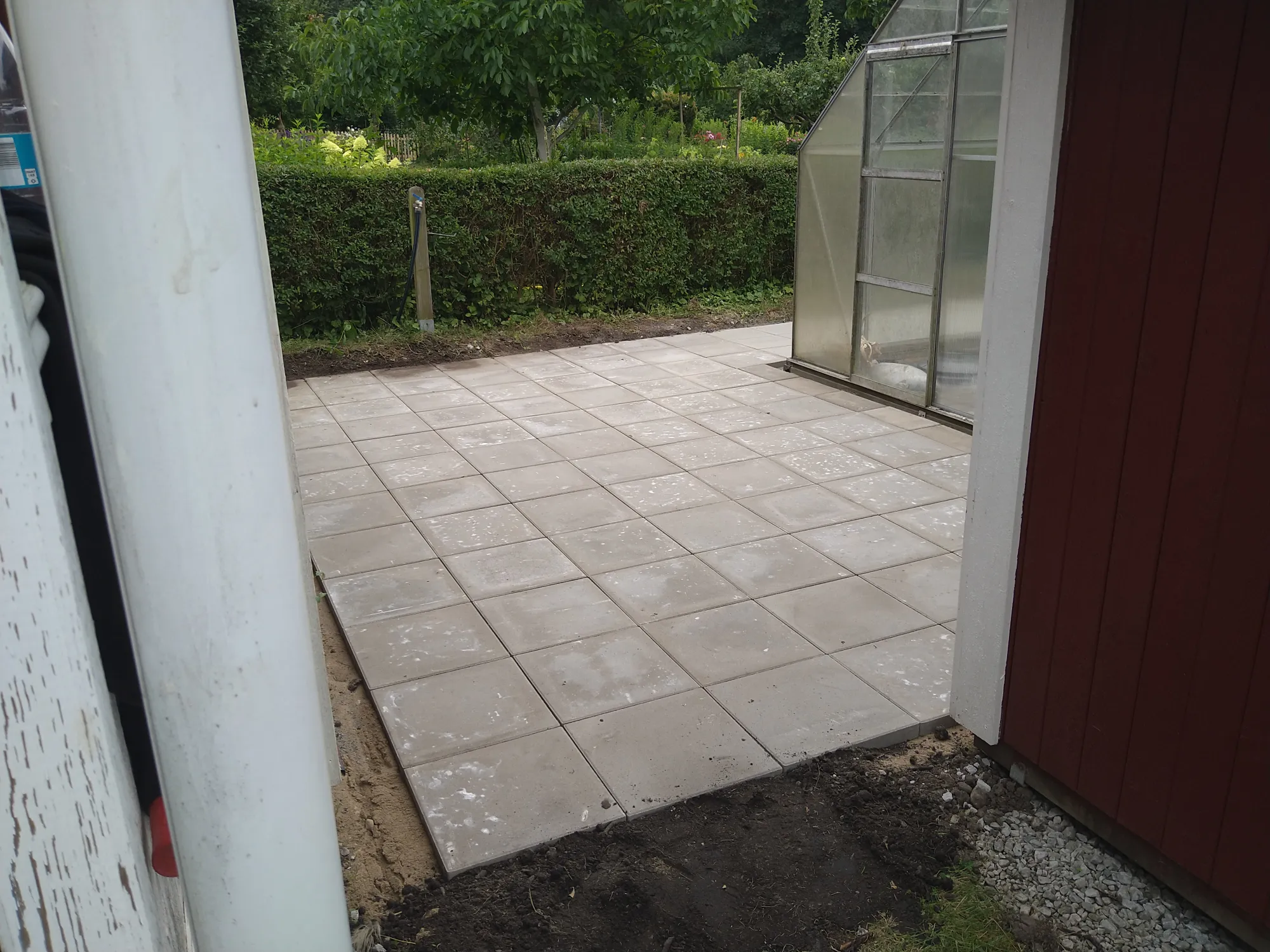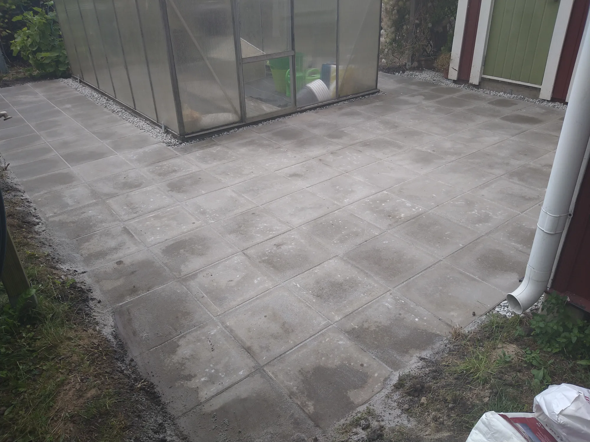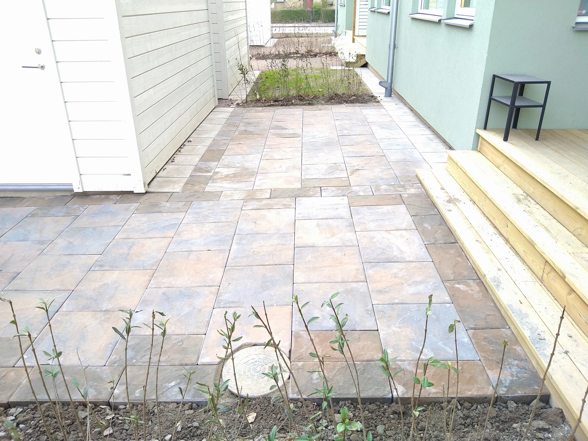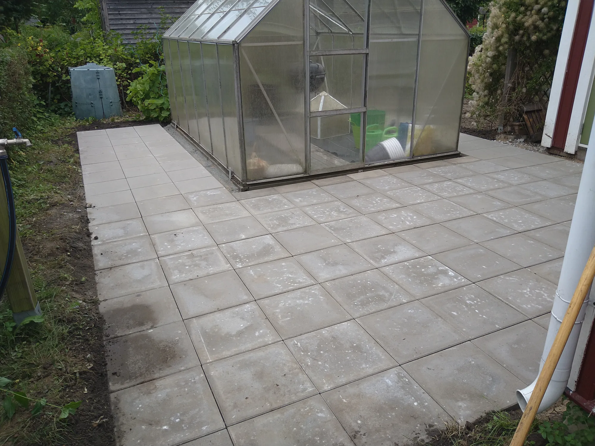 Stensättning med 40*40 plattor på en kolonilot