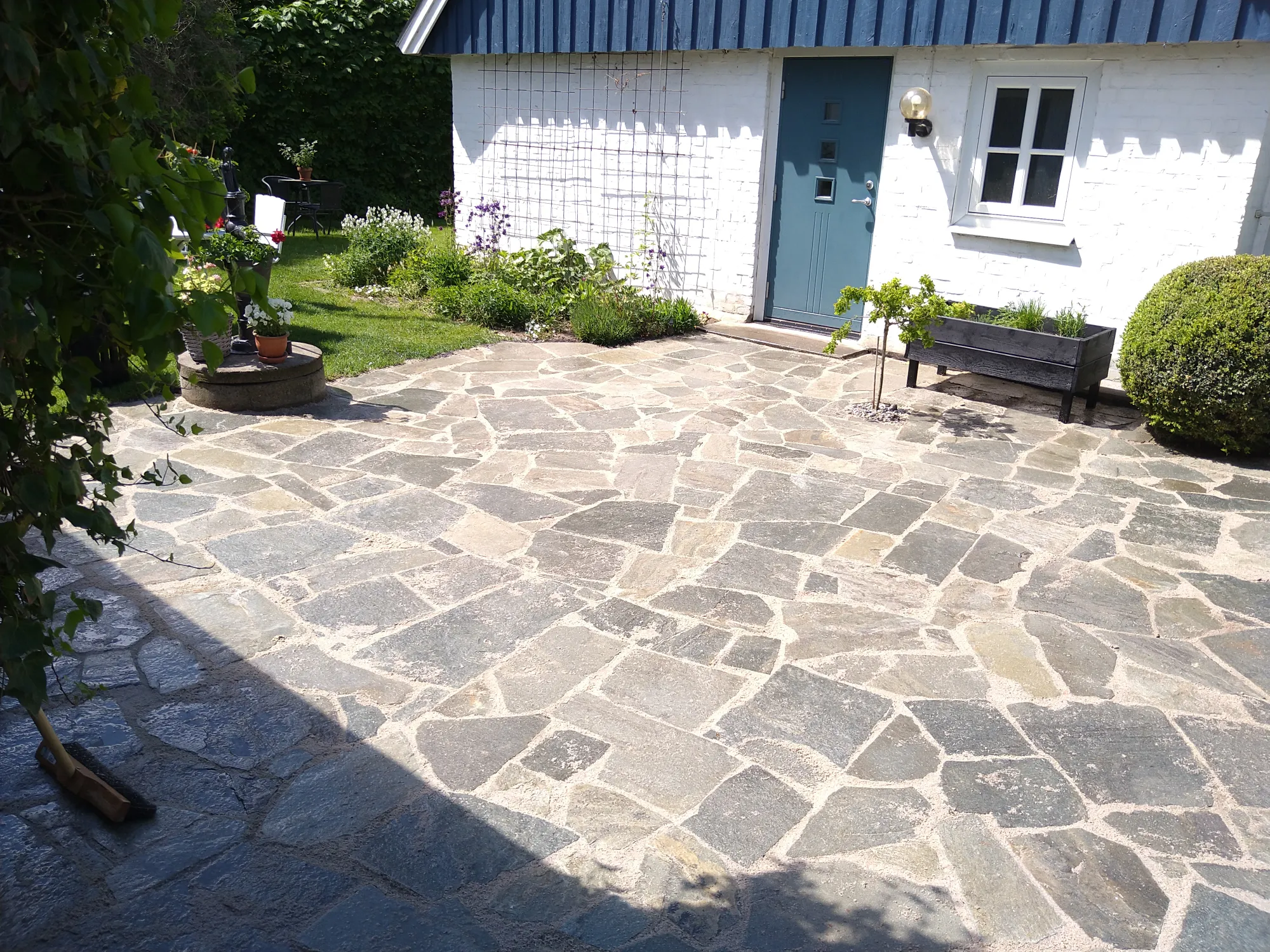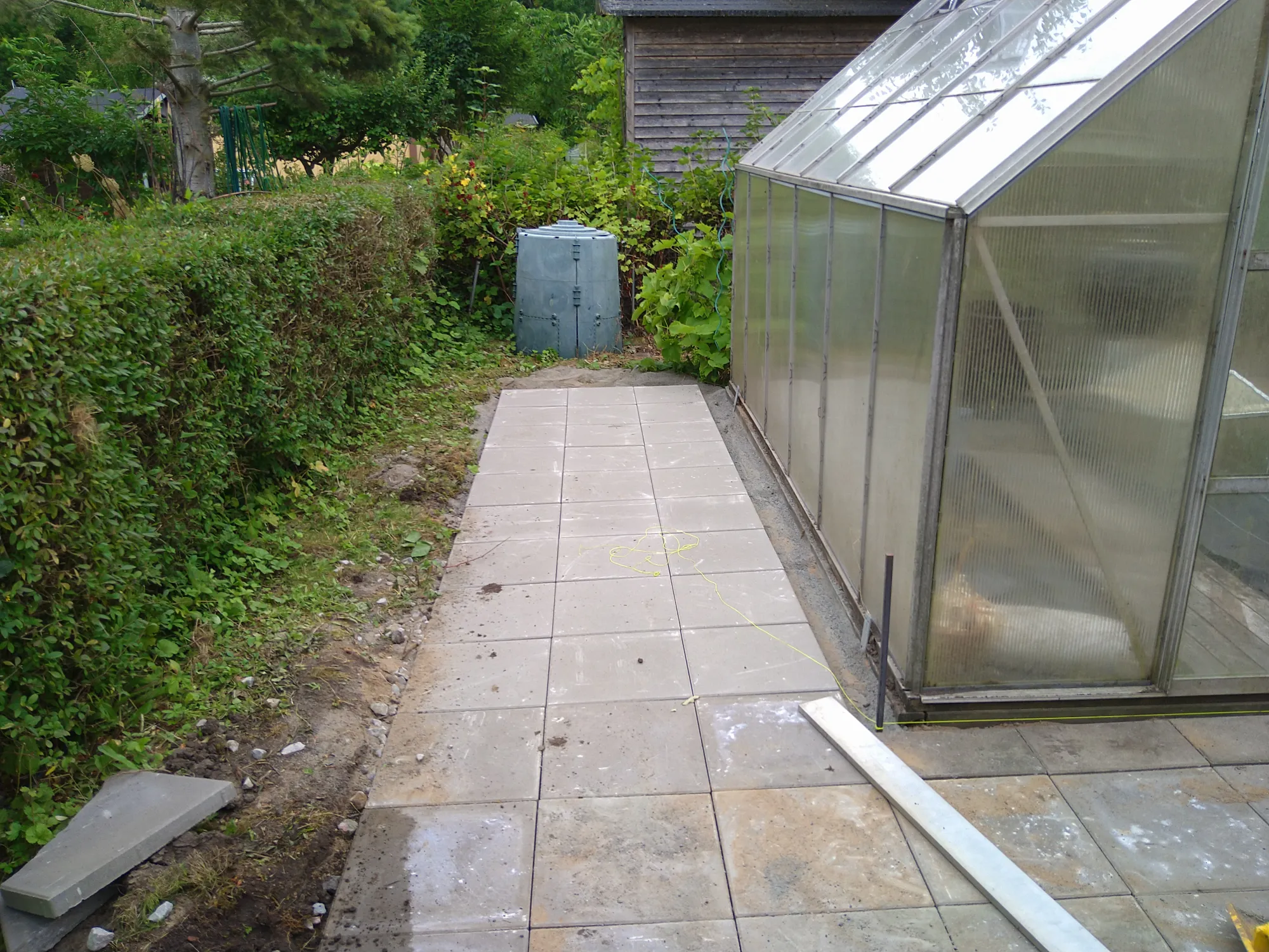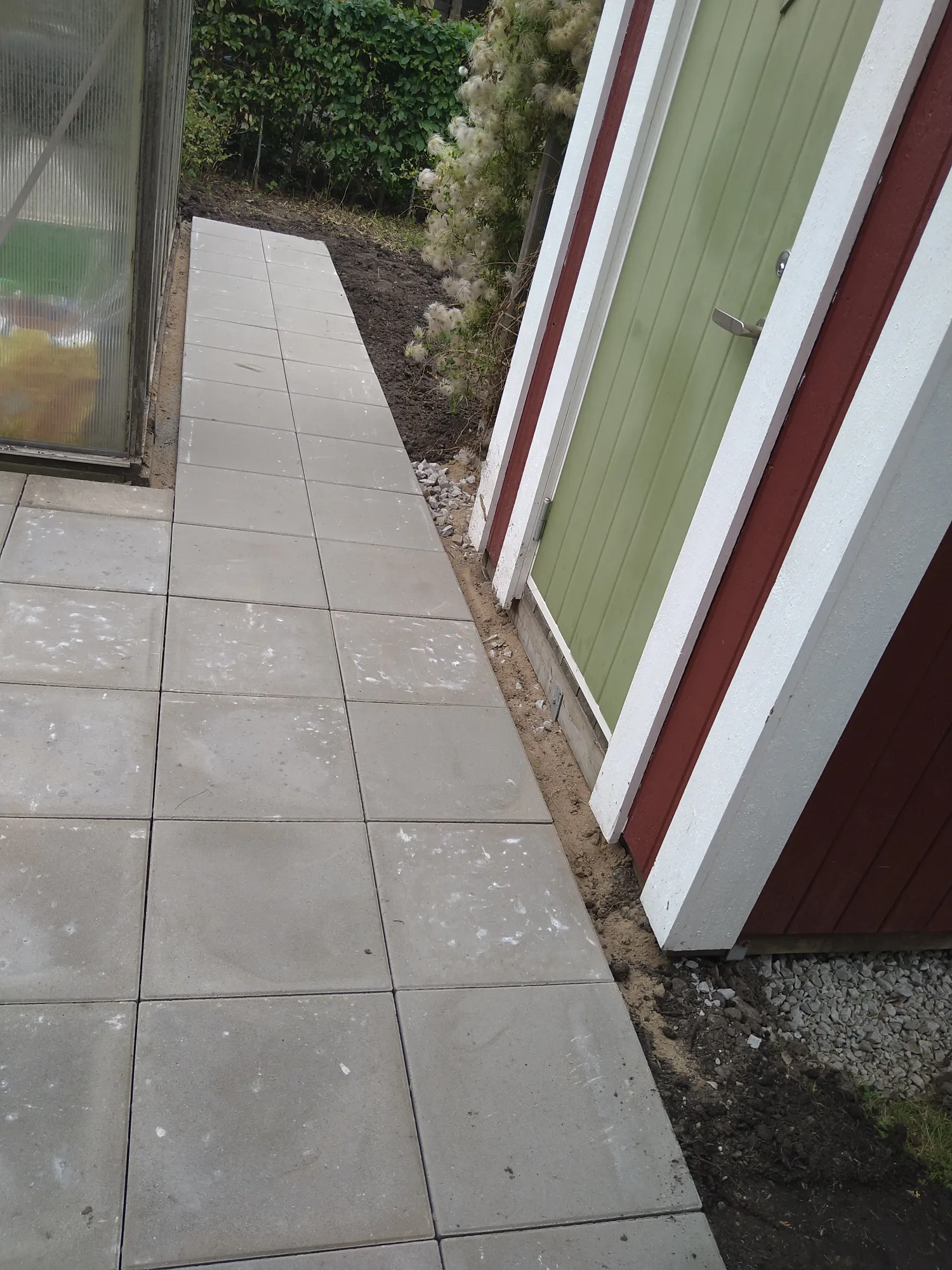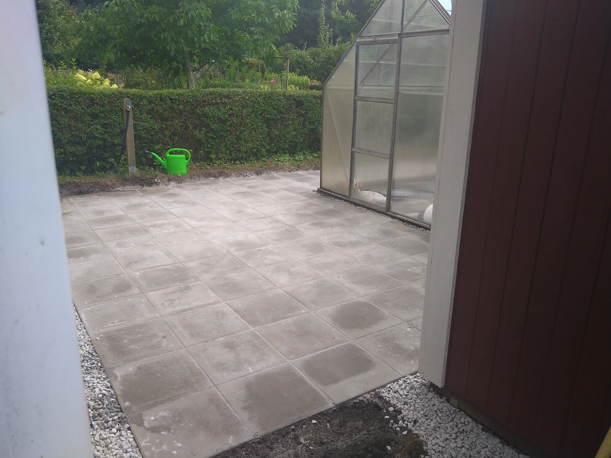 Stensättning med 40*40 plattor på en kolonilot