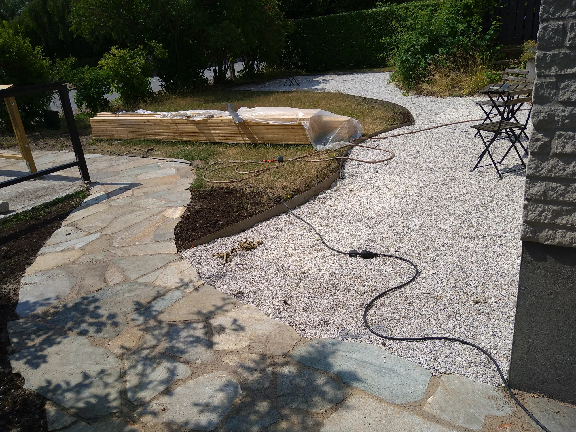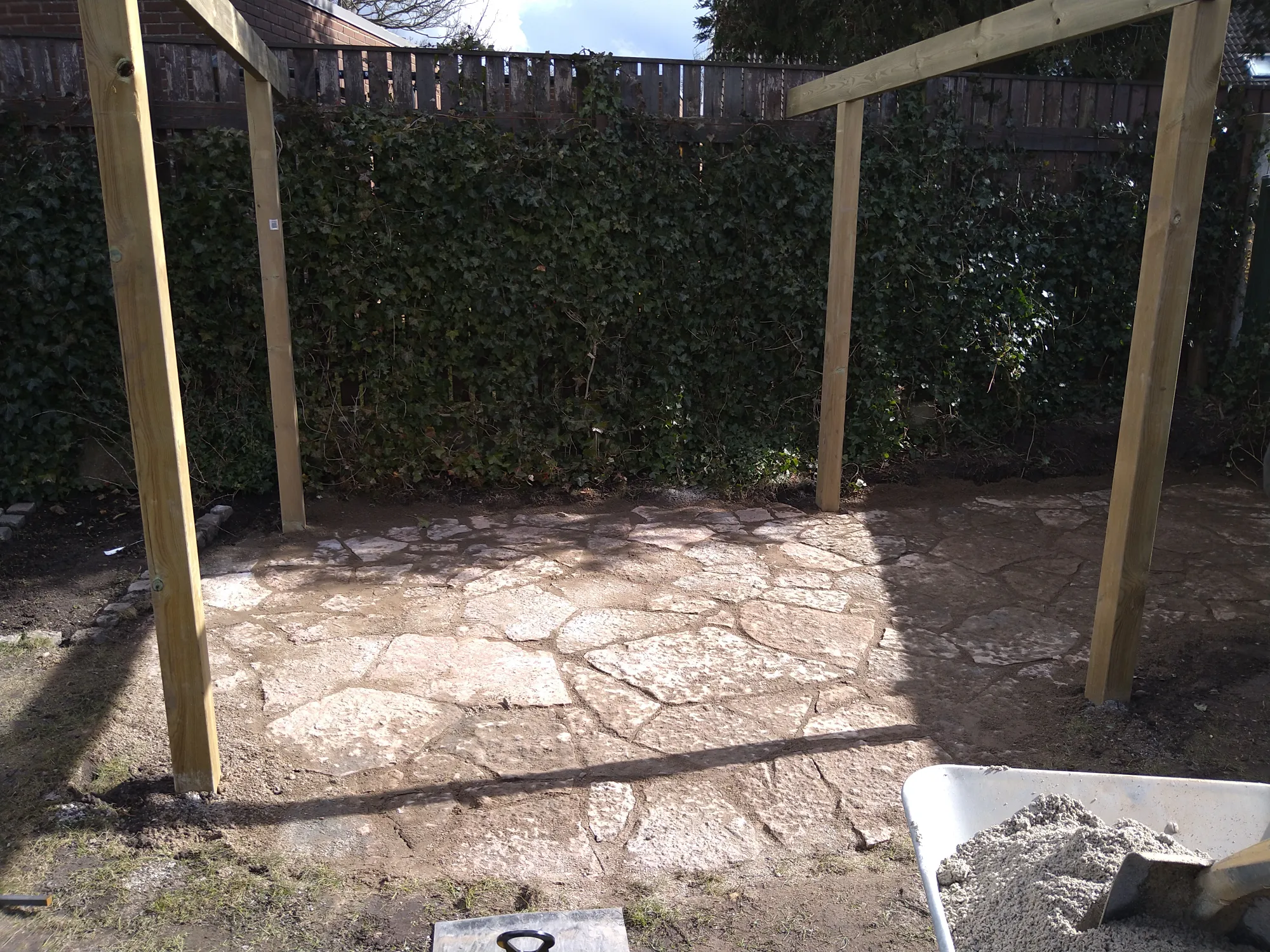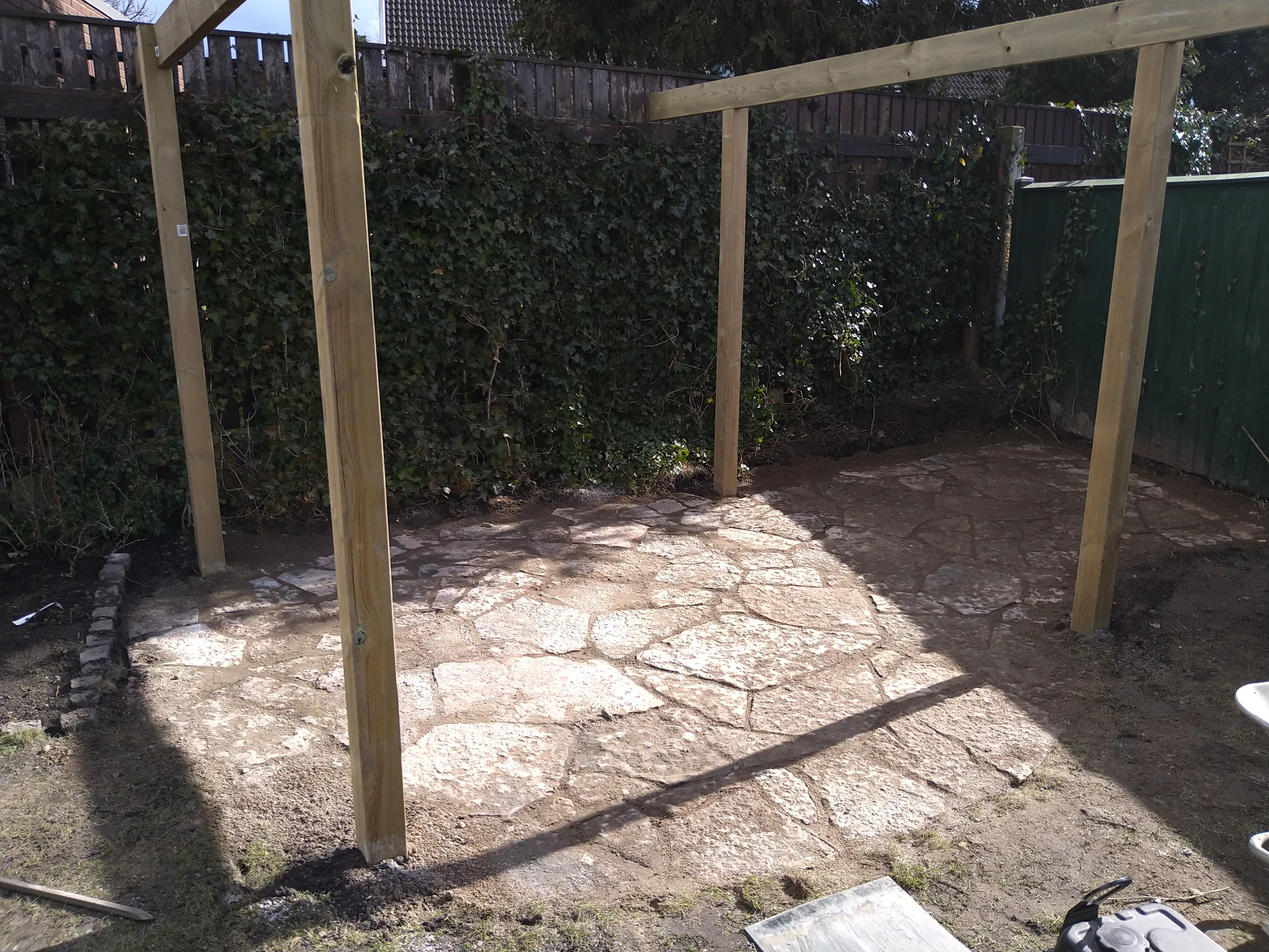 Stensättning av Ölands sten och uppsättning av ramma till pergola