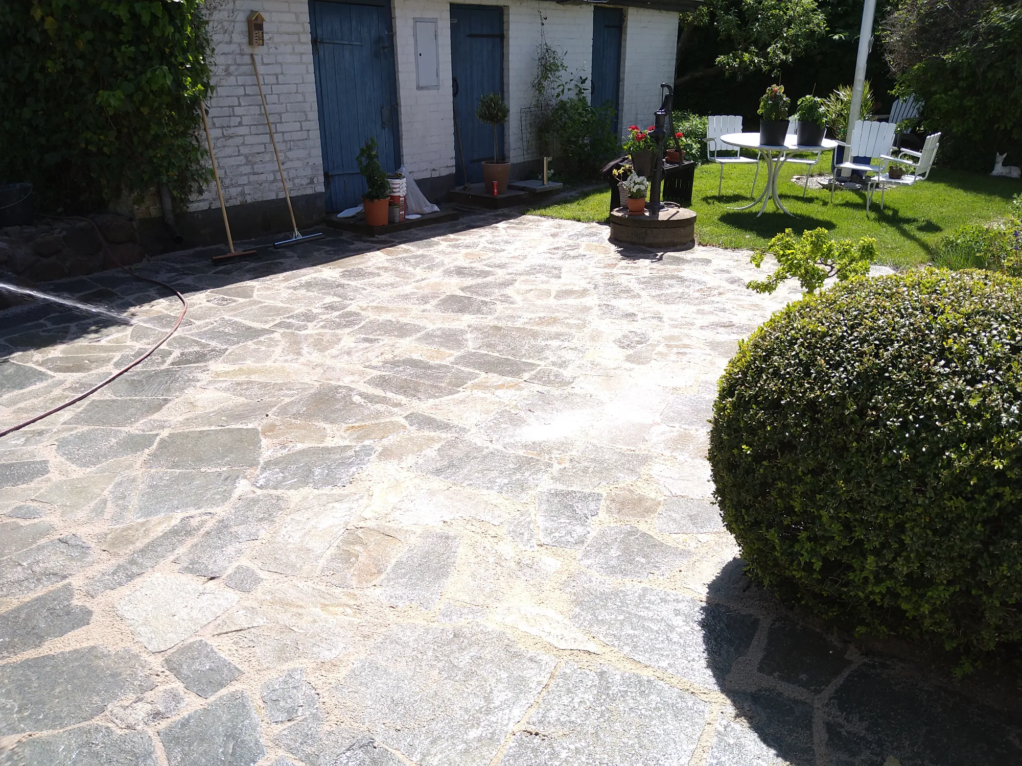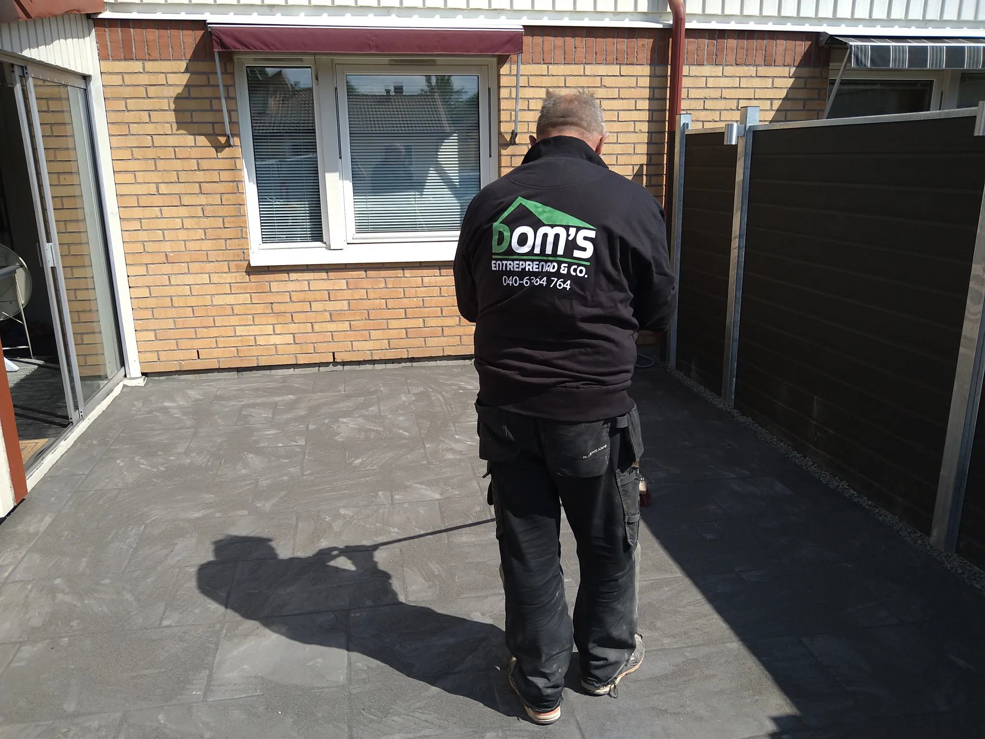 Anläggning av skiffer och gatsten samt gjutning av platta