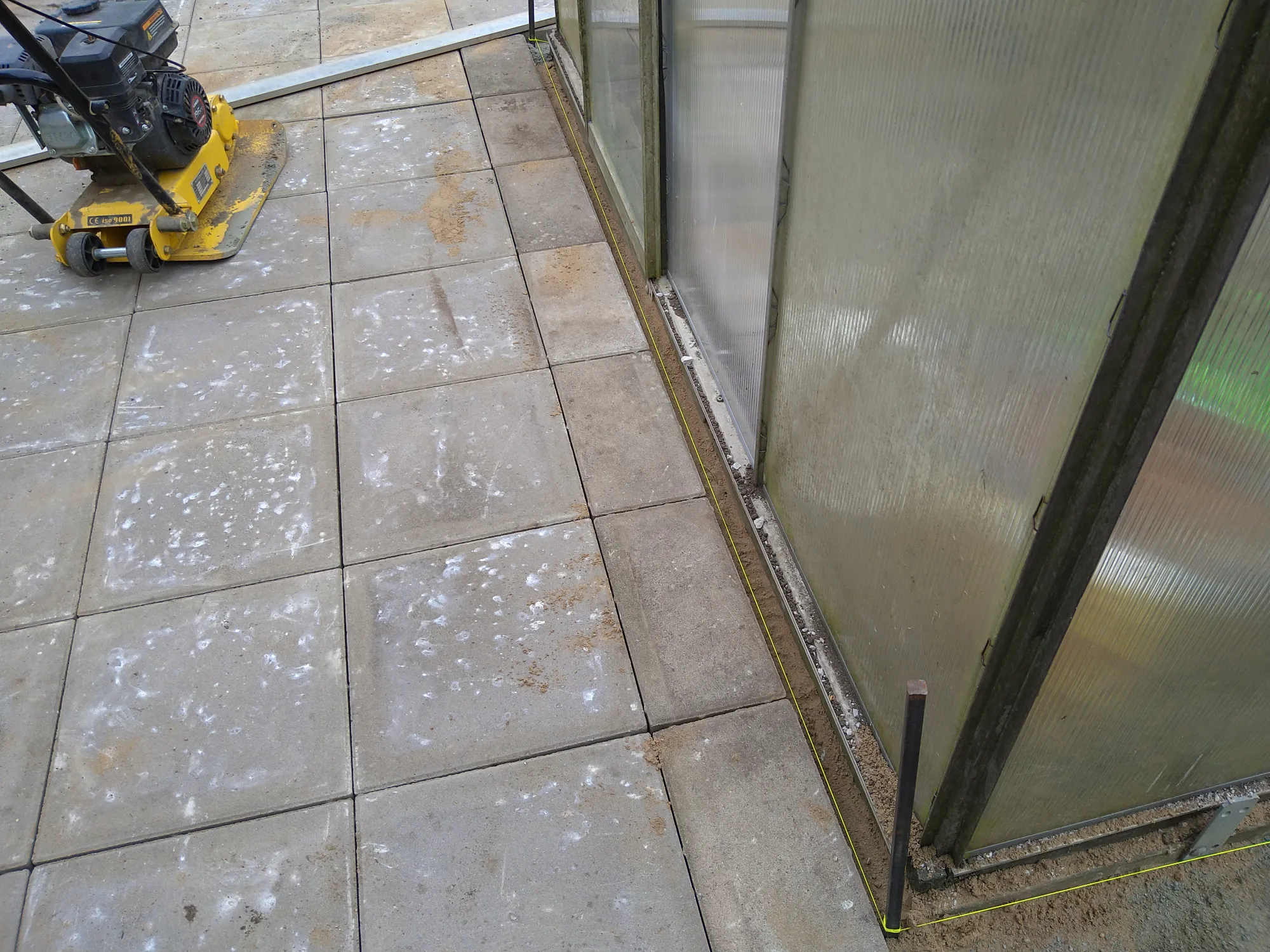 Anläggning av tegel, granitkeramik och gjutrör samt montering av gjutrör för växthus